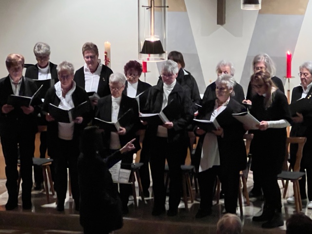 Sie sagte dass es trotz Erkrankungen der Männer des gemischten Chores sich der Frauenchor nicht nehmen lasse, das Konzert zu bestreiten und damit auf das bevorstehende Fest der Geburt Jesu einzustimmen, um ein wenig Zeit der Ruhe und Besinnung in die Herzen zu bringen. Dazu wurden von der Chorleiterin Marianne Kaiser extra Lieder ausgewählt, die nicht jeden Tag aus Radio und Lautsprechern in den Geschäften dröhnen.